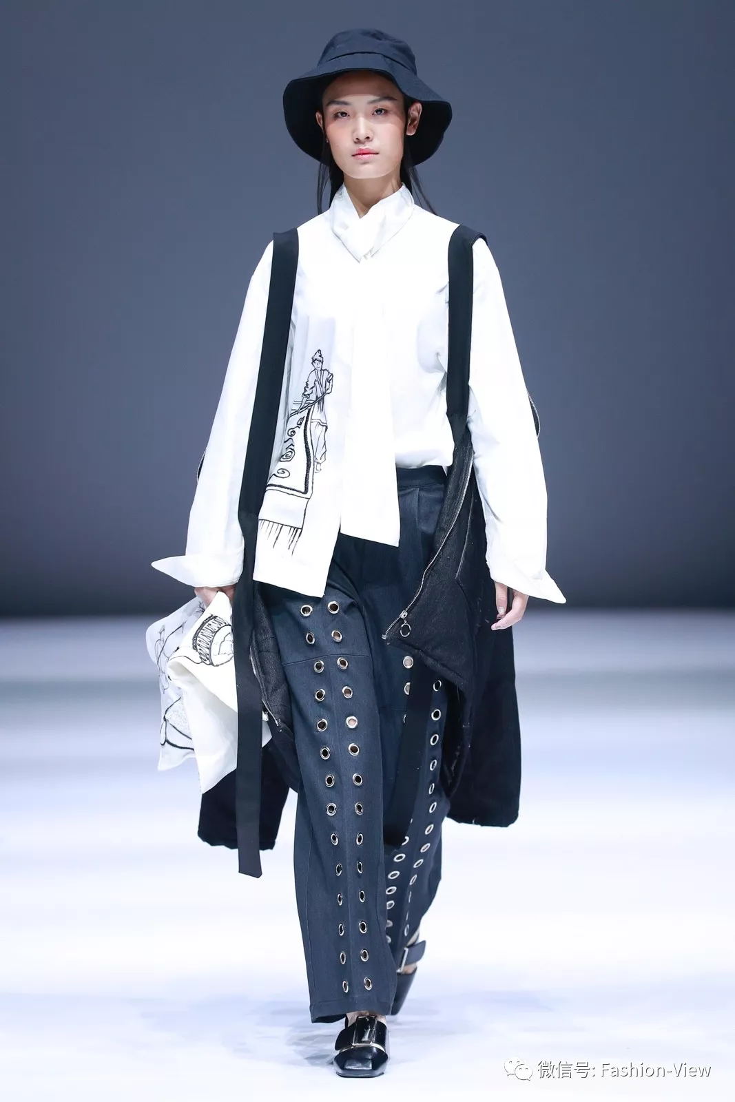 本次的作品发布的独特之处在于,从“汉”文化的视角切入,体会和思考西安作为十三朝古都的文化底蕴与内涵,强调对中国传统服饰文化的挖掘与研究。毕业设计作品中,除了强调西方服饰结构的立体块面,同时还通过服饰结构的披挂缠裹、手绘的写意水墨画、手工刺绣装饰等,强调出对东方传统文化的尊重与继承。