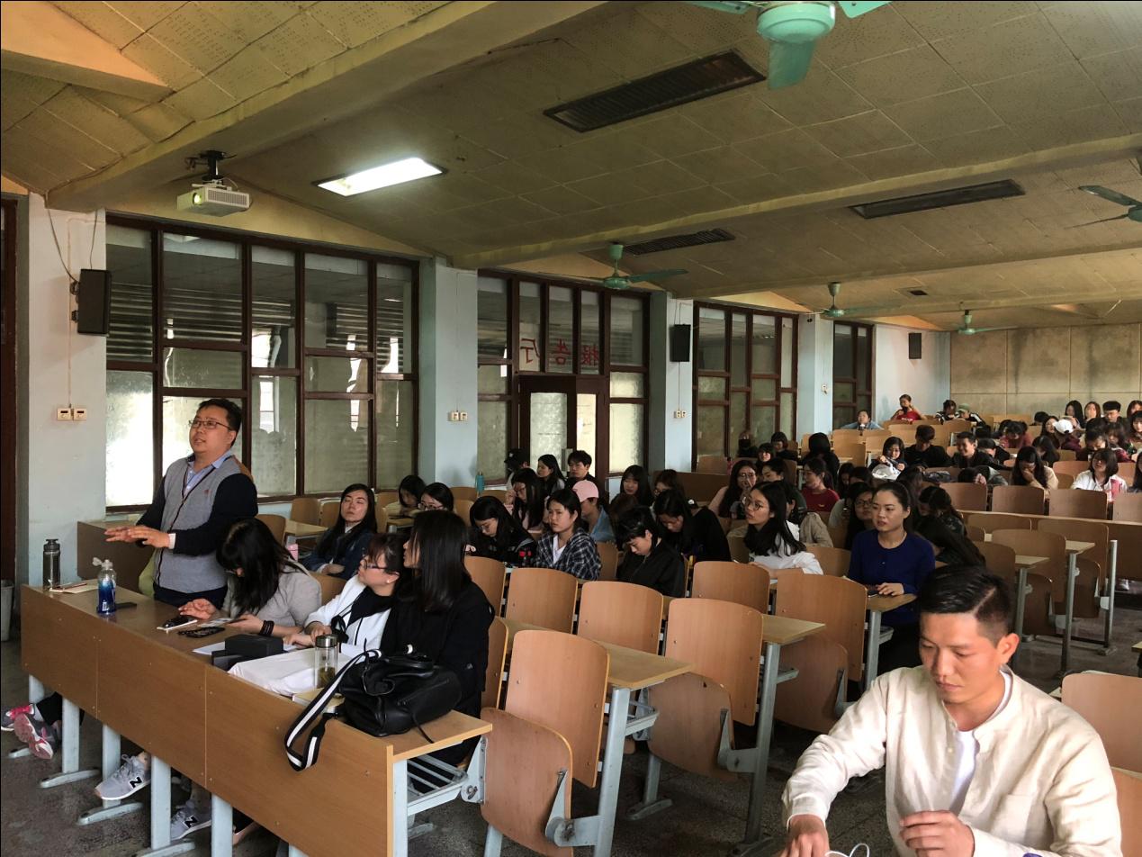 2018年4月17日下午16-18点,服装设计系诚邀具有国际印花设备龙头企业宏华数码多年工作经验的、杭州慕锐科技公司创始人及CEO金海云先生进行了题为《数码印花——点亮你的设计灵感》的数码印花科普讲座。