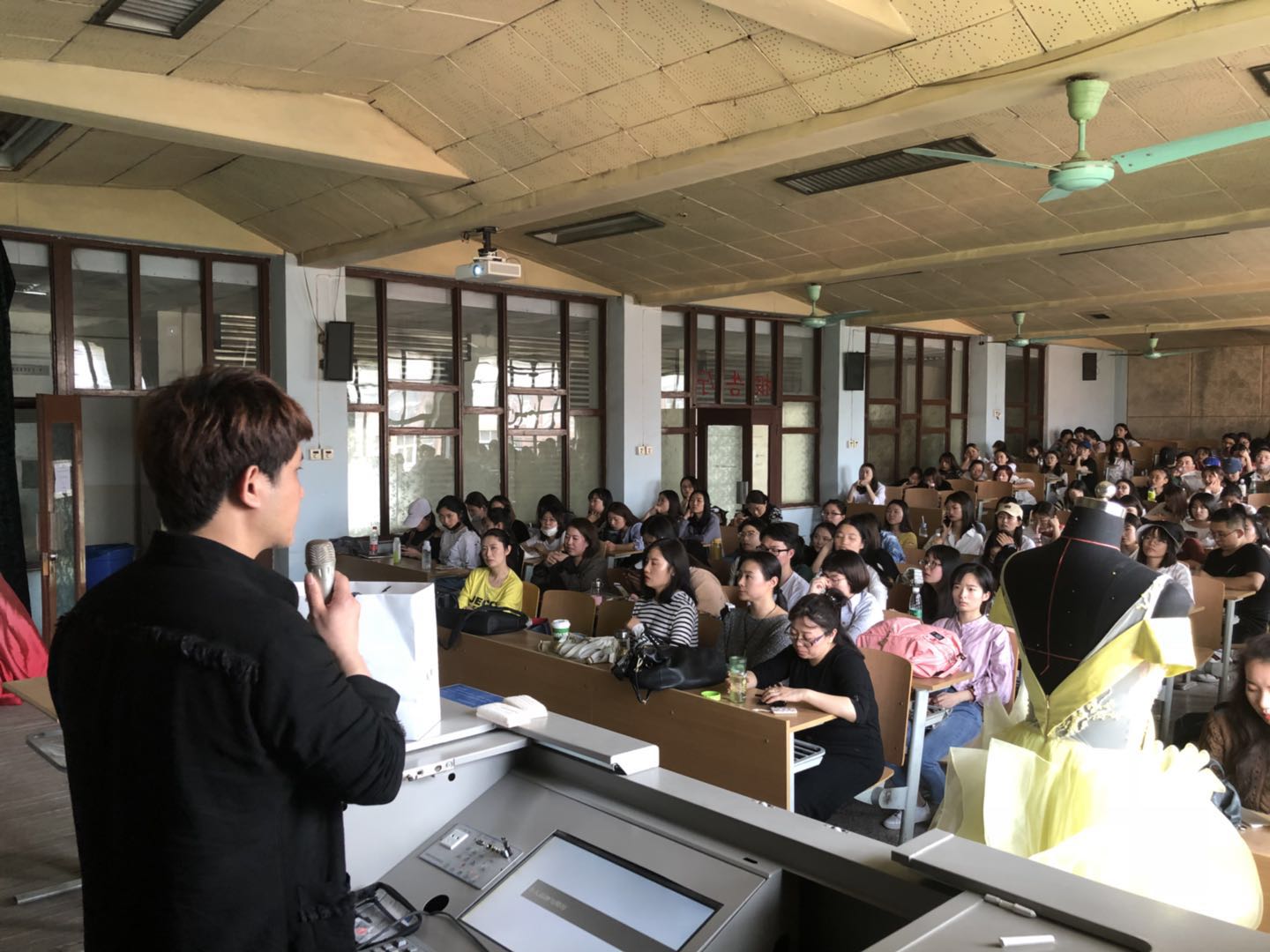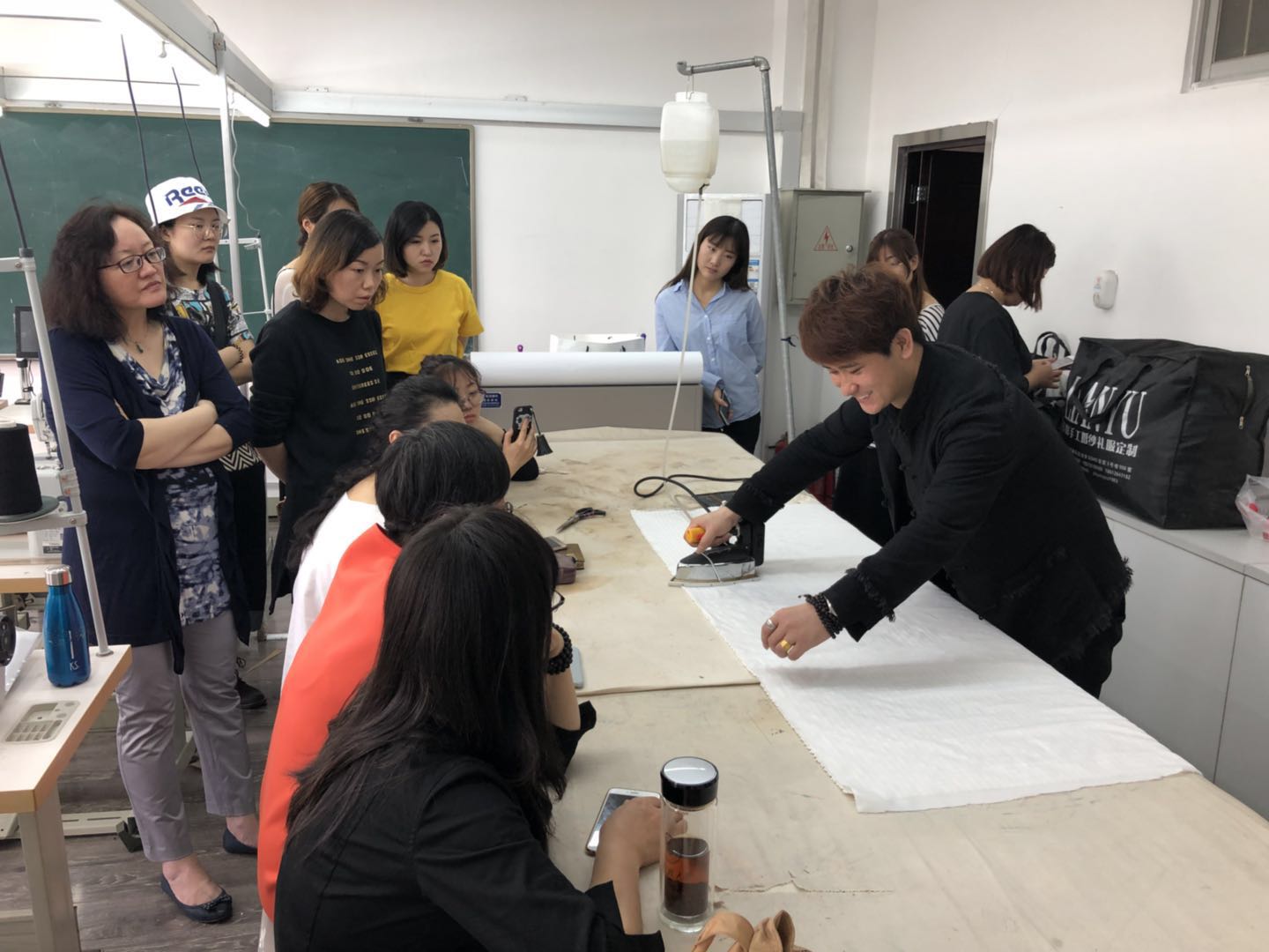 服装设计系于2018年4月2日至4日邀请北京盛合天下服饰有限公司主理人朱昕有老师与服装设计系、服装工程系、内衣设计系十多名教师进行了为期三天的《旗袍工艺设计与制作》的交流,就《婚纱礼服流行趋势、品牌理念及发展》面向2015级服装与服饰专业学生进行专题讲座。