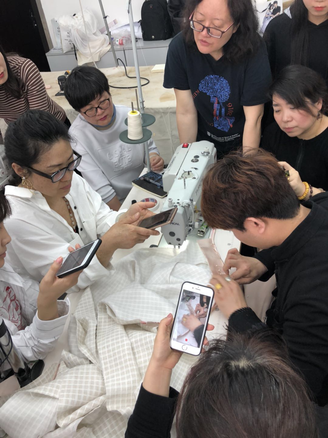 各位老师了解到制作旗袍的细节工艺。随后,各位老师也进行了制作练习。