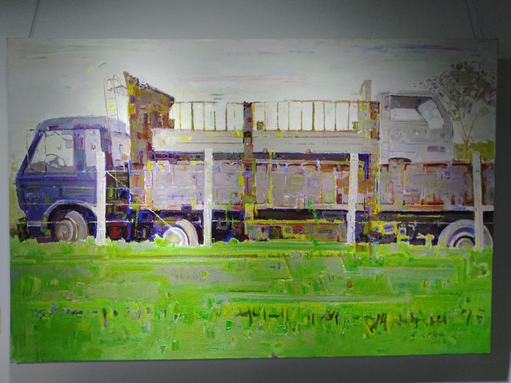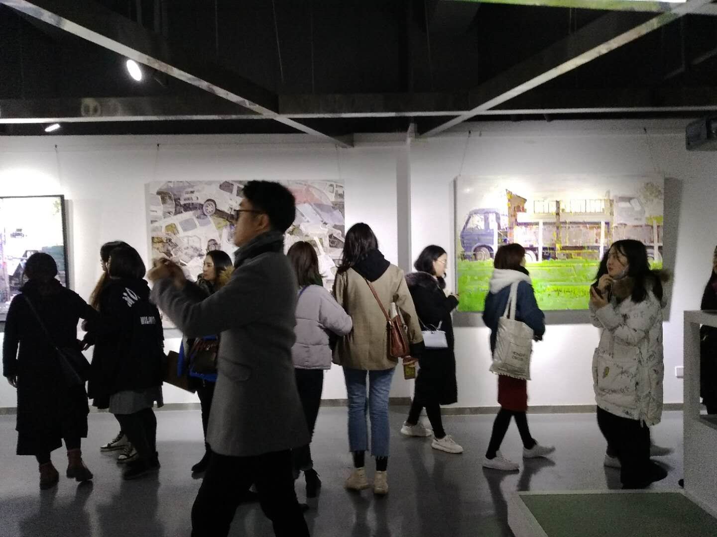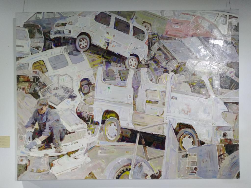 ,在工作之余都潜心坚持绘画创作。此次展出的就是三位老师近两年来的28幅油画作品。他们的作品在整体面貌上都是偏写实的风格,是一种形象直观可见的,从造型、色彩、空间到现实的真切体验,对自然和生活的深入观察。同时,他们三个人的作品又有着各自的鲜明特征和审美趣味,试图在不同的写实语境中找到自己的定位,如现实主义写实、浪漫写实、象征写实、观念写实以及装饰写实等。王肖霏的作品以写生小品的形式感受自然界,试图在田园牧歌式的抒情和现代艺术的装饰趣味之间找打一种表达的可能性,作品构图新颖,清新脱俗,意境浪漫宁静,画面具有国画般的意味,仔细读来犹如散文。张晨阳的室内空间作品通过对现实性和象征性的描绘处理,让画面充满了强烈的剧场感和荒诞感,作品最具理性美,严谨的透视,纵深的空间,张弛有度的描绘,画面具有诗歌美。李春山的废旧车辆系列作品,试图通过对工业废弃物的描绘,对工业生态的关注,表达一种他所理解的“文明的质感”,作品最具叙事性,大尺幅、大笔触,大刀法、大色块,干脆利落,画面张力十足。三位老师的作品体现了他们各自在绘画语言和形式上的探索,带来了多样的视觉感受,得到了现场观摩的领导和观众的好评。