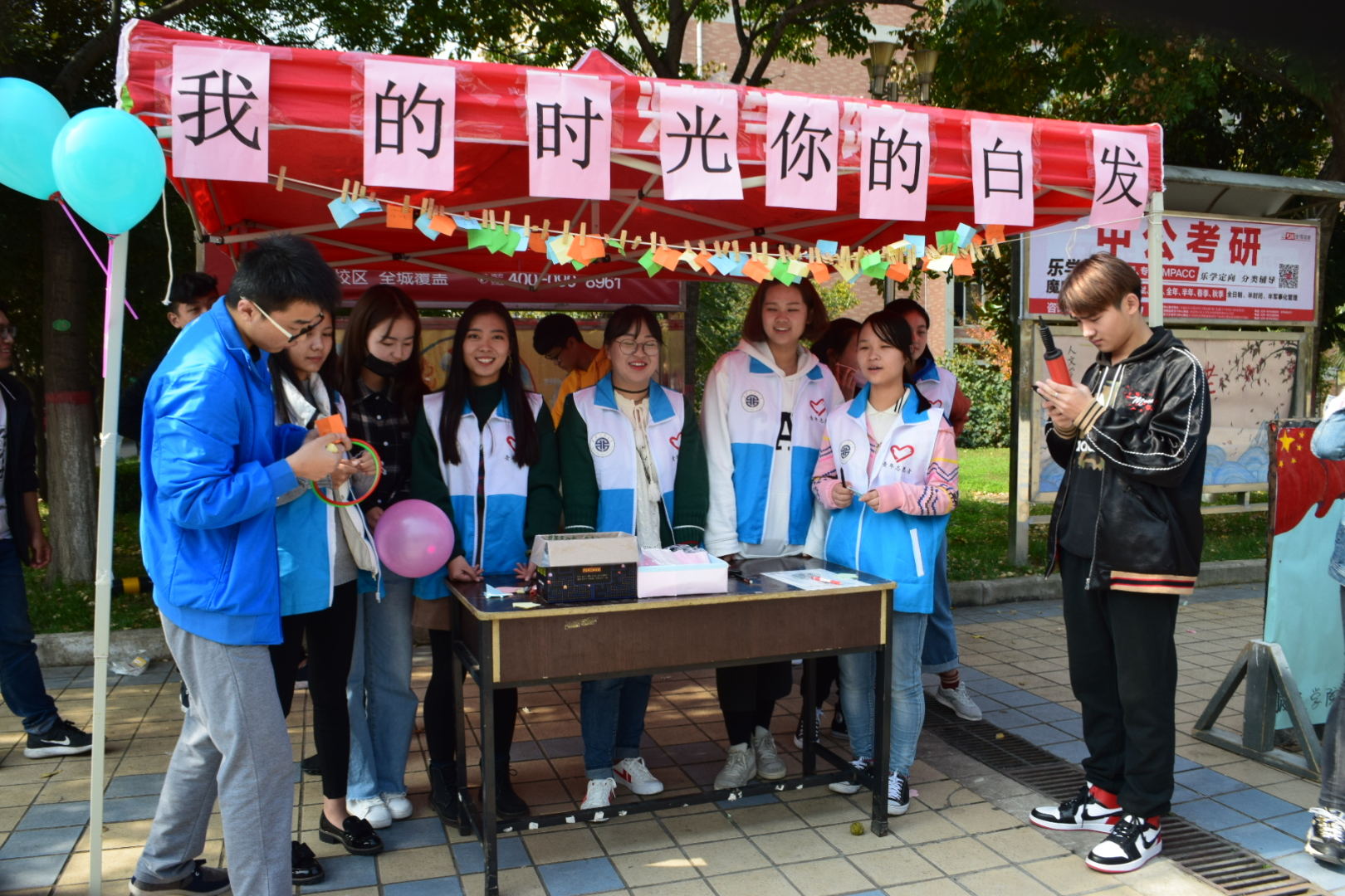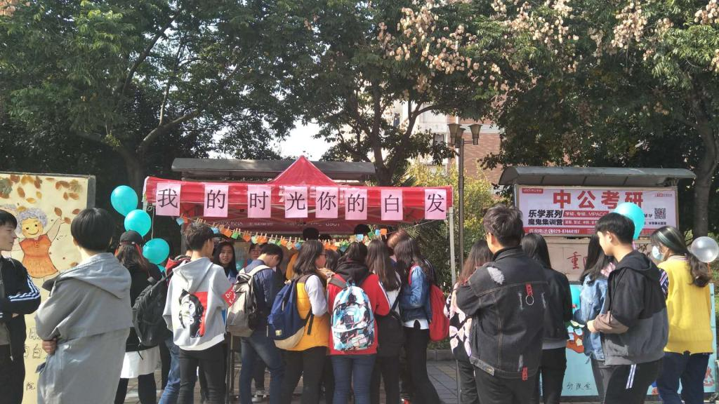 于10月27日中午,重阳节到来前夕,在临潼校区中心广场开展了以“我的时光,你的白发”为主题的爱校日宣传活动。本次活动由925足球直播
