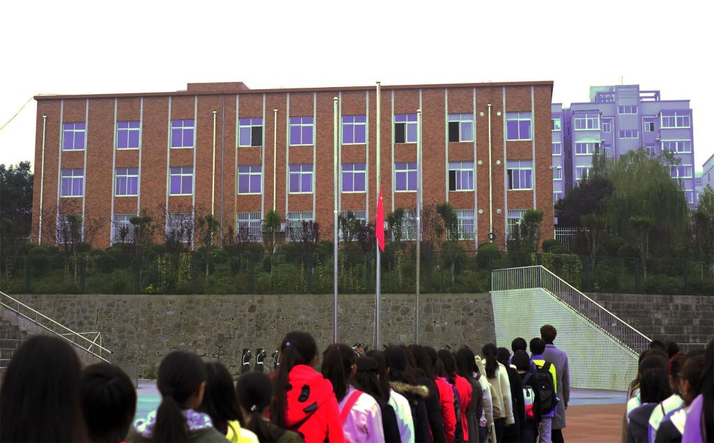早上六点多的校园还带着夜色,然而同学们都精神抖擞,昂首挺胸,集中在体育场上,以班级为单位,有序的站好队,等待着庄严升旗仪式的开始。