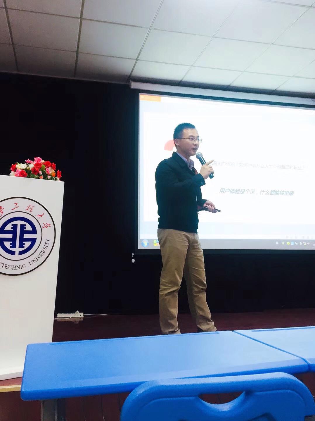 产品设计系2017年系列学术论坛之《产品用户体验要素及工作流程》于10月9号晚在临潼校区人文管理楼214教室举行,共有来自大二、大三产品设计专业、视觉传达专业的同学共200余人聆听了讲座。