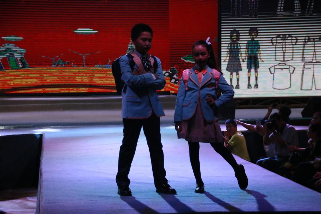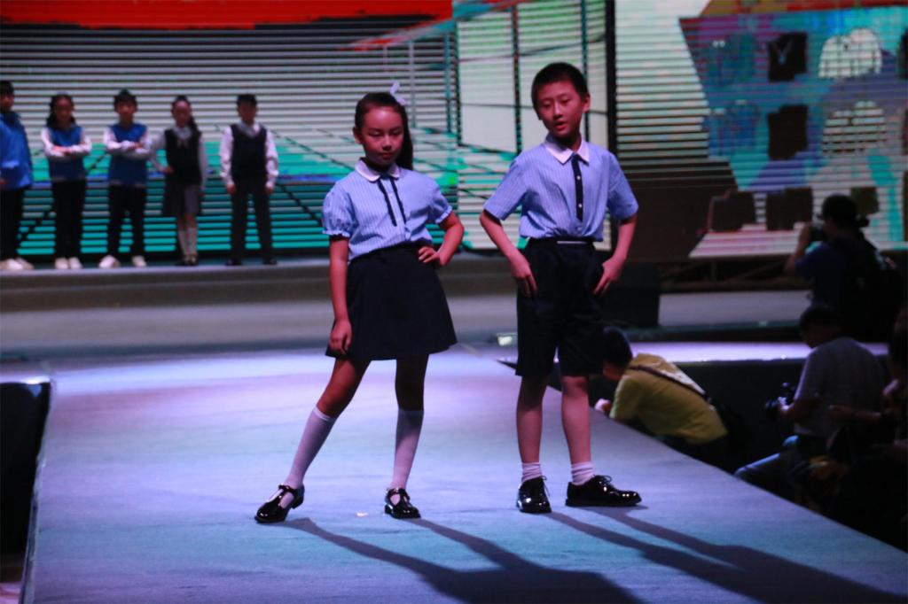 本次大赛从今年三月份启动,共收到全市校服设计稿件425份,其中小学组153份,中学组272份。大赛组委会于6月22日举行了初赛评审工作,最终推选出小学组25个系列作品、中学组25个系列作品进入决赛。决赛开始前,有44组选手完成了样品制作:其中小学组21个系列、中学组23个系列(每个系列有男、女生夏季、春秋季、冬季校服共6套组成)。总决赛上展示了选手们制作的中小学校服作品,其中不乏有英伦范儿、韩国范儿的校服,也有体现汉唐文化的校服,还有能引起八零后集体回忆的《Li 雷与韩梅梅》——白色衬衫短袖、蓝色背带裙,满满的年代感。
