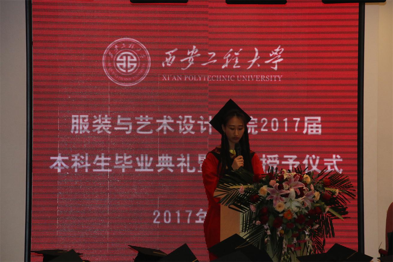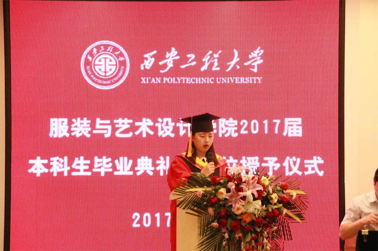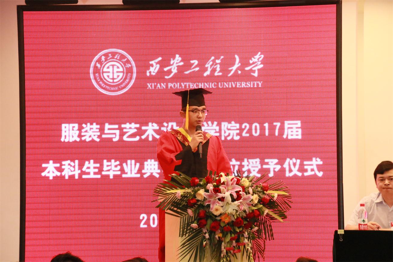 优秀毕业生代表服装表演专业任子瑜、产品设计专业孙伟一、环境设计专业王丹青分别发言,他们代表全体毕业生对所有老师在大学四年里的辛勤培育表示衷心的感谢,并表示今后一定会不负老师嘱托,继续在各自的岗位上认真学习、努力工作,成就精彩人生,用成绩向925足球直播