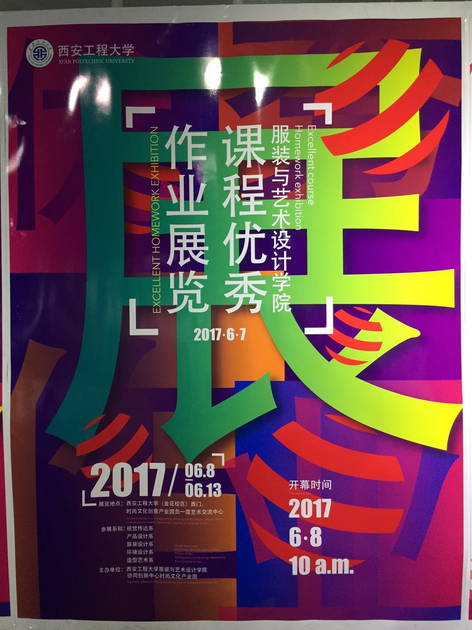 视觉传达设计、环境艺术设计、产品设计、服装与服饰设计、造型艺术设计系七个专业二百余件优秀的学生课程作品参展,作业形式多样,内容丰富,具有很强的思维训练和实践操作的特点。本次课程作品展将一直持续到6月14日。