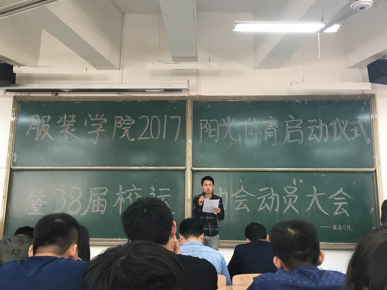 为落实运动会期间各事项安排,保证运动会的顺利开展,服装学院于4月17日中午13点在临潼校区B栋教学楼召开了2017阳光体育启动仪式暨38届校运动会动员大会。党委副书记胡小进、团总支书记马薏雯、辅导员老师黄博宇、邵巍、孙晨倩,团学科干部、15、16级各班班长、团支书及运动员出席了本次会议。