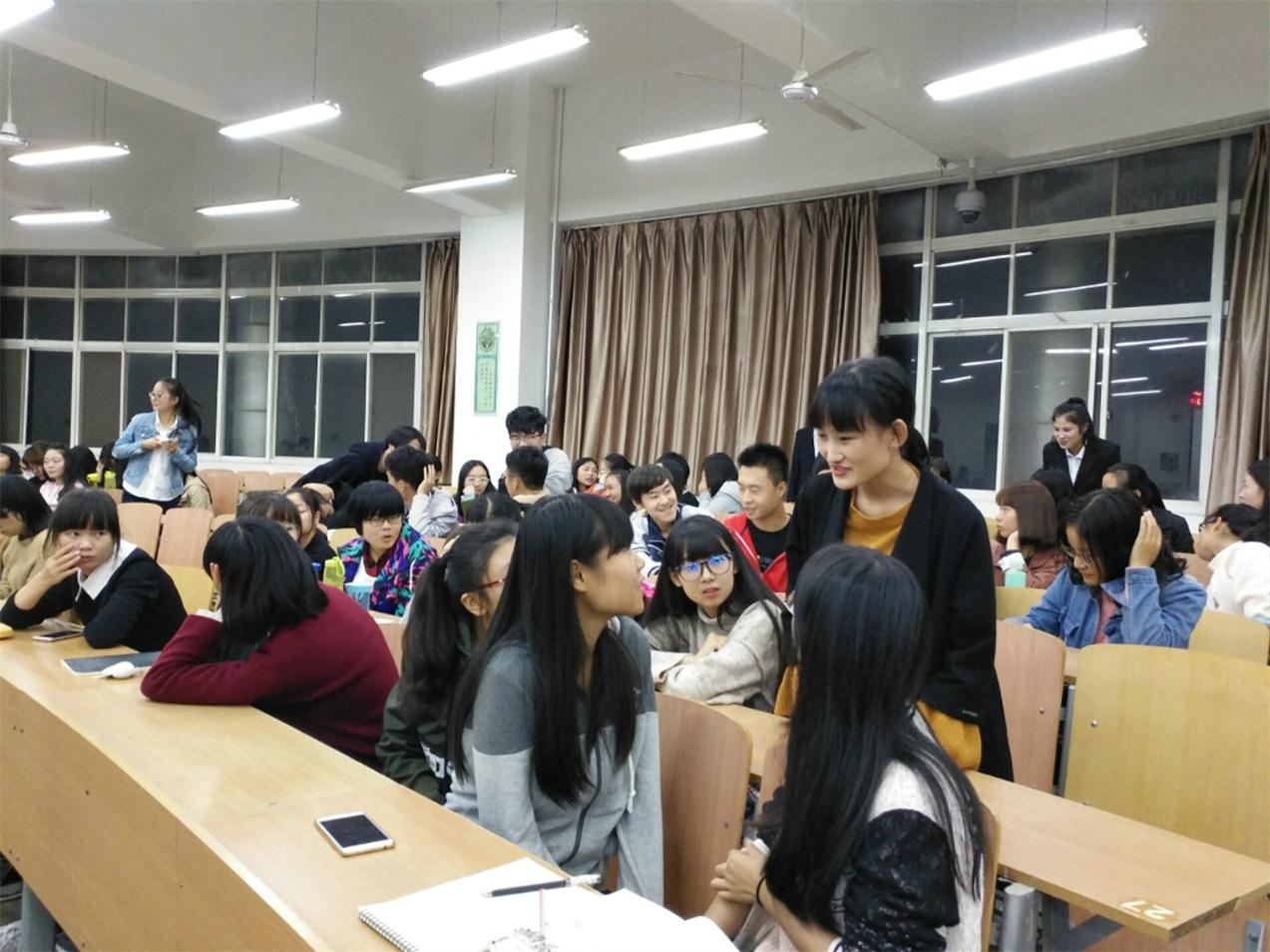 各位学长学姐分别上台自我介绍并播放自己大学期间的活动照片,个别学长学姐还讲述了自己找工作的感想,并告诫在场同学专业课学习的重要性,希望新生们能转换以往学习态度,从被动转换为主动学习,同时学长学姐们也希望在校新生能够积极参加学校各项活动、培养自己的兴趣、制定目标、不断提升自己的各项能力、在工作中锻炼自己,从而度过一个充实而圆满的大学生活,在随后的问答环节,学长学姐就同学们关于如何获得学分、奖学金等问题也都做出了耐心细致的解答,使同学们在解决了自己内心的困惑之后对未来自己的学习生活也有了一定的规划。