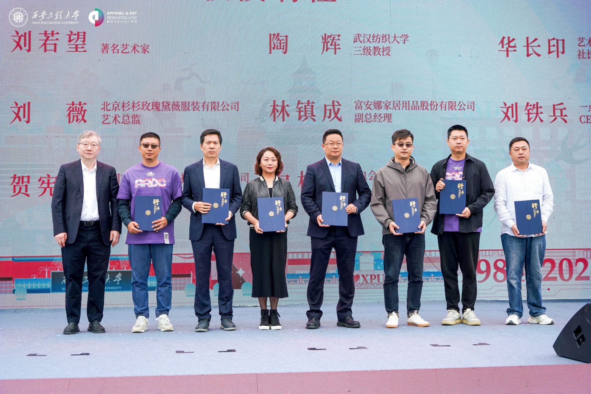 会上,副校长朱永民为叶菲校友等及企业代表颁发捐赠证书;副校长戴鸿为著名设计师韩家英、刘薇,著名艺术家刘若望,武汉纺织大学教授陶辉等10人颁发客座教授聘书;副校长夏蔡娟、张洛红为富安娜集团副总裁杨彬,意尔康股份有限公司研发副总经理李海章,影儿时尚集团华中分区总经理何曦等20人颁发行业导师聘书;925足球直播