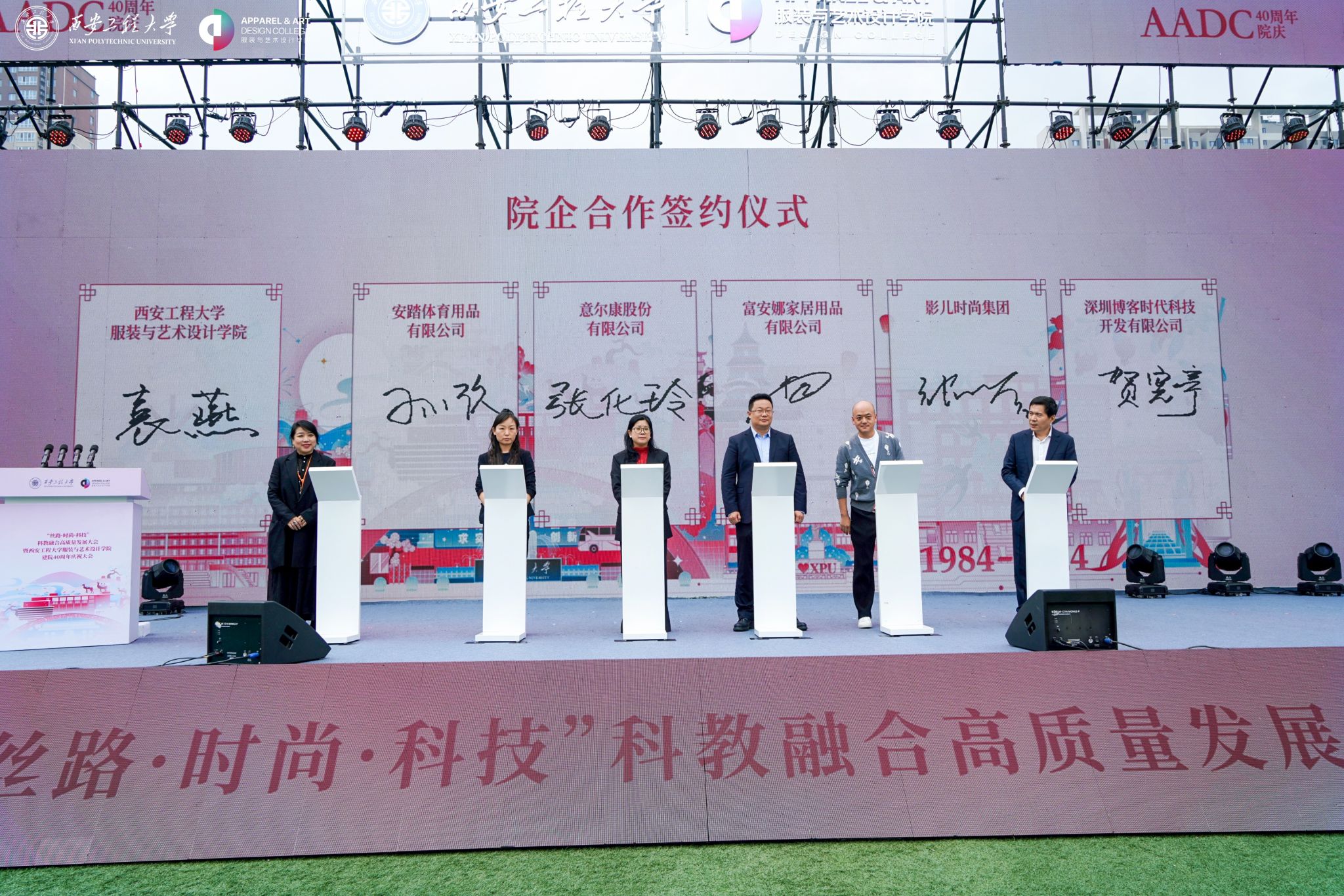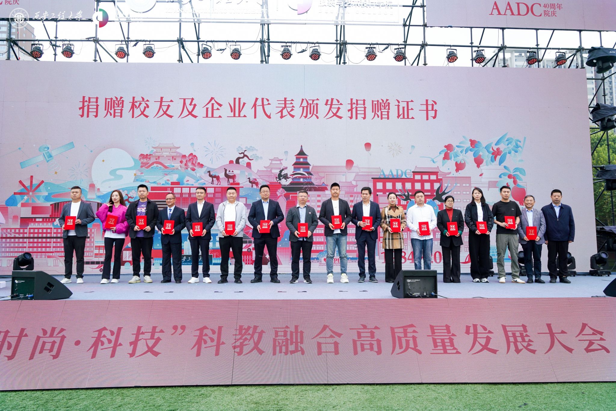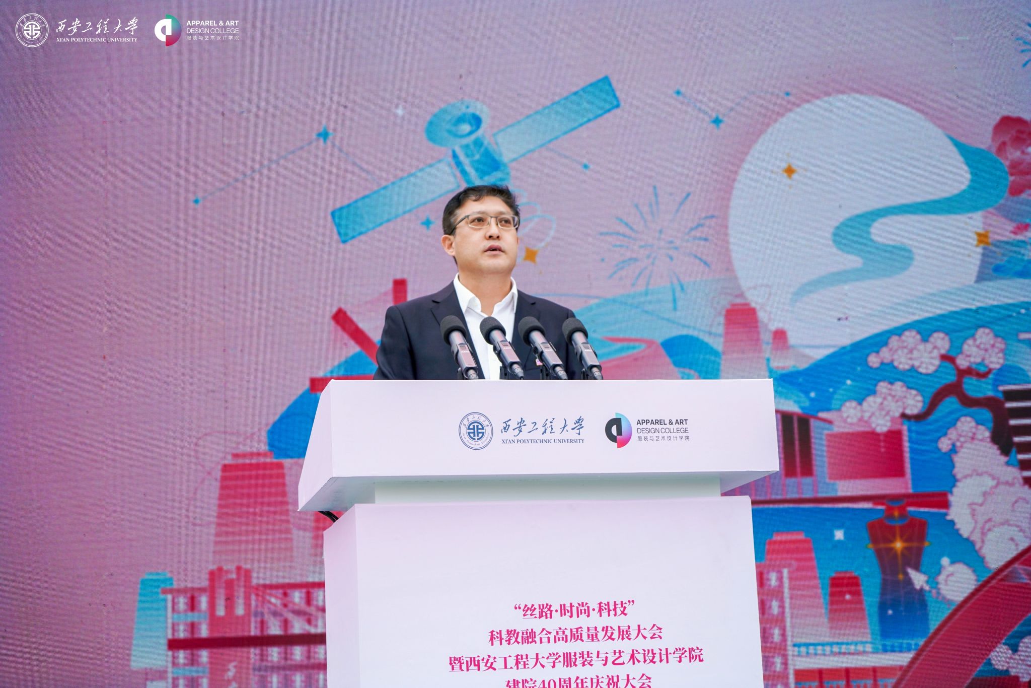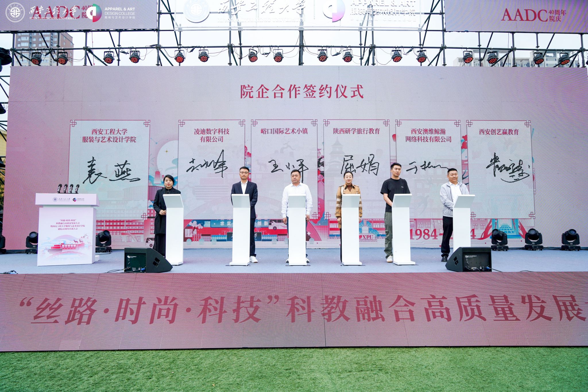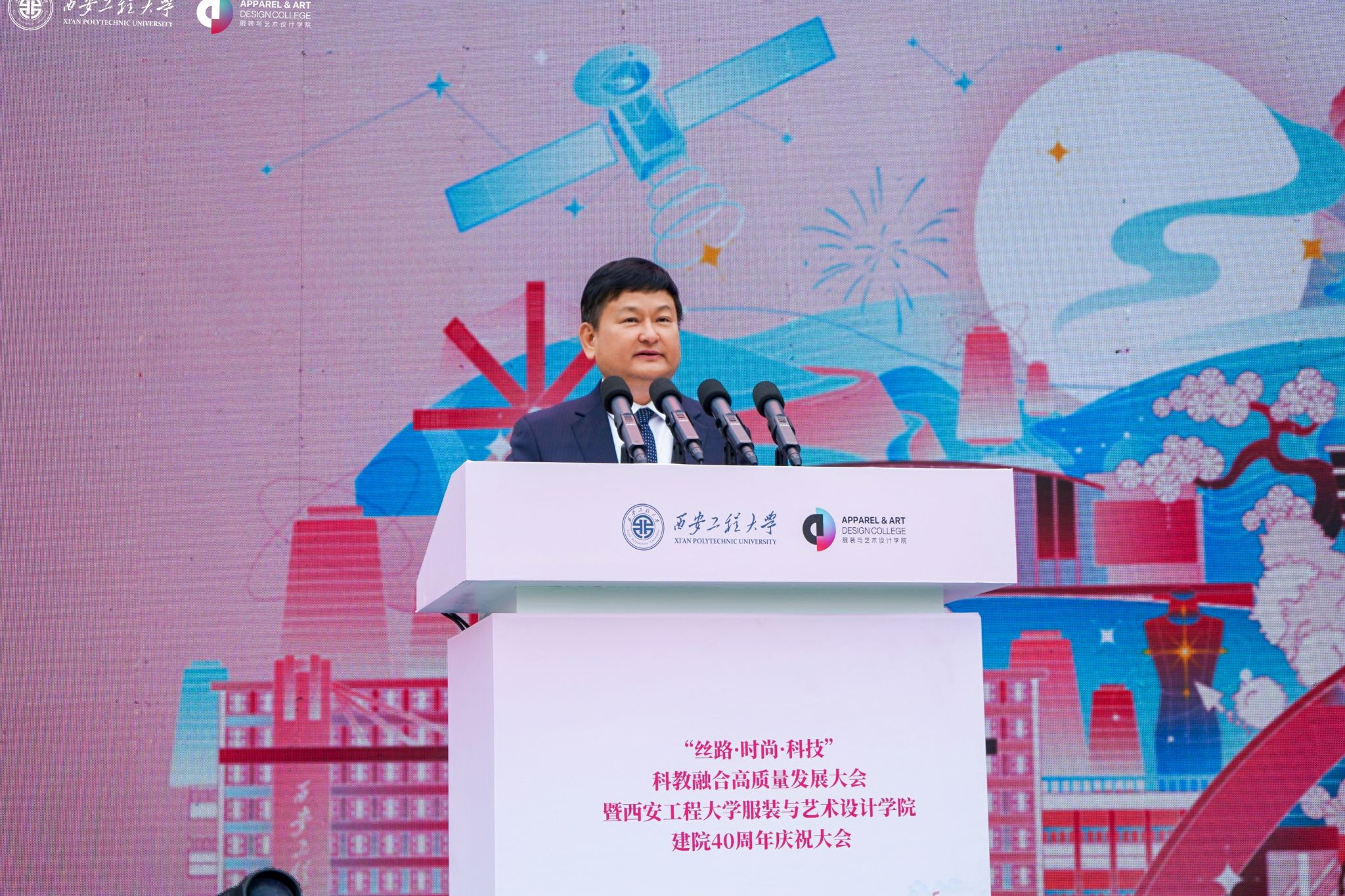 在金花校区举办“丝路 时尚 科技”科教融合高质量发展大会暨建院四十周年庆祝大会。校领导马万清、朱永民、戴鸿、夏蔡娟、张洛红,国内相关领域专家学者、行业领军人物、企业代表及支持925足球直播