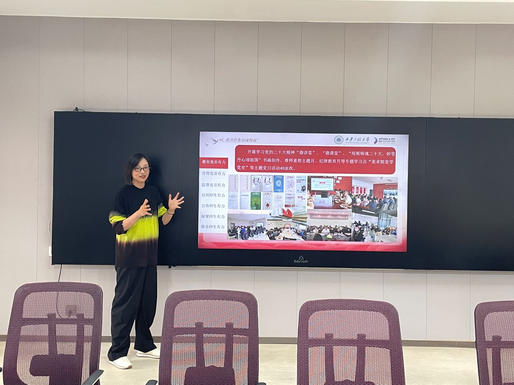 副处级组织员吴艳杰组织第三批全国党建工作样板支部——服装设计系教工党支部支委参加交流。