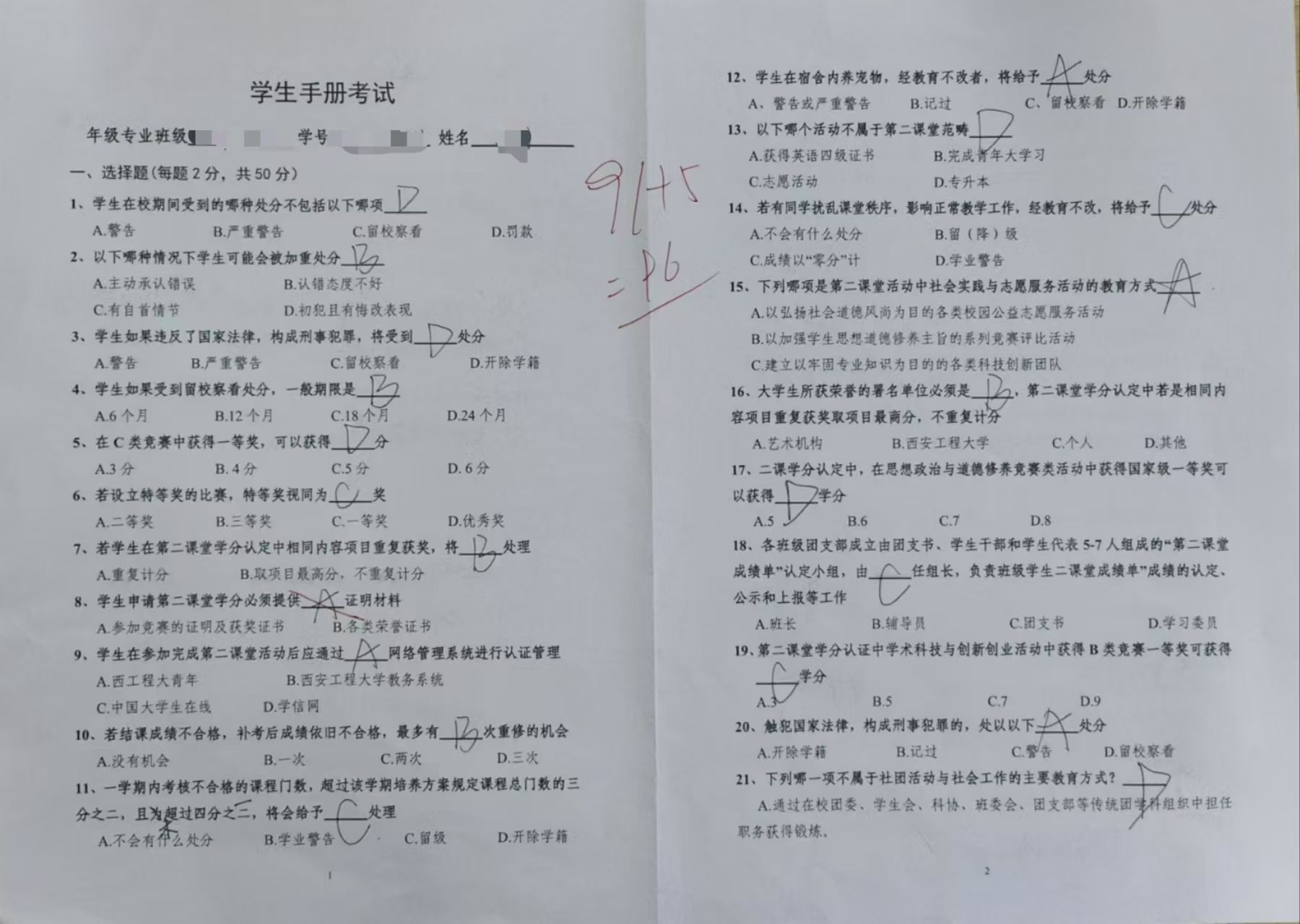 特别安排了补考机会。为了加强记忆并明确校纪校规,未能通过考试的学生需抄录学生手册的相关内容,以此加深对学校规章制度的认识。