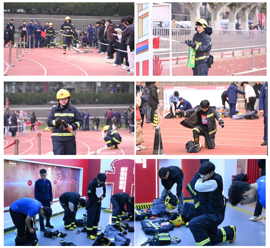 团委副书记孙晨倩的率领下昂首入场。他们在赛前两周内,频繁深入碑林区消防基地,进行了系统且严格的训练。这份坚持与努力,在比赛当天得到了最完美的展现。运动员们以沉稳冷静的态度、熟练精准的动作,成功征服了原地着装、水带接力、穿越火场烟雾、火场救援、障碍跑灭火打靶这五大挑战项目,赢得了现场观众的阵阵喝彩与评委的高度评价。