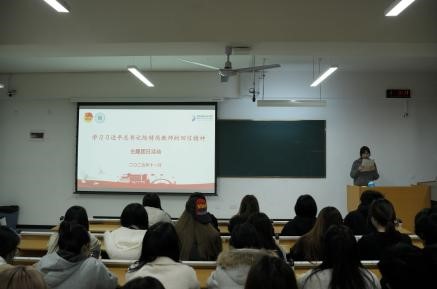 团委书记马薏雯老师参加,院团委组织部负责人赵晓菲主持;美术学专业全体团员在1-202教室同步开展活动。活动中,各班级均组织观看特岗教师主题纪录片,闫越老师坚守山区七年育人、刘玥老师创新乡村英语教学等扎根乡村、默默奉献的感人事迹,让同学们深刻领悟"特岗计划"在促进教育公平、赋能乡村振兴中的重要意义。随后,2024级服装设计7班马克清同学带领专题学习习近平总书记重要回信精神,梳理118万特岗教师的突出成就,解读总书记的深厚教育情怀与国家战略考量。交流环节,美术学专业团员代表赵子豪称特岗教师为"行走在乡村的教育英雄",倡议大家以其为榜样锤炼本领、强化担当,未来到基层贡献力量,真挚发言赢得持续掌声。总结时,赵晓菲鼓励同学们立足服装设计、视觉传达、美术学等专业特色,关注乡村美育需求,以专业素养助力乡村教育提质与文化建设。