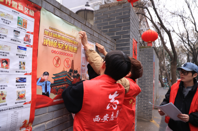 暖阳青春服务队,寒假期间在西安市碑林区柏树林街道东大街社区开展社会实践活动。