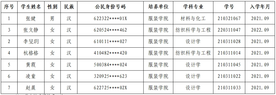 根据我校《西安工程大学研究生国家奖学金评审办法》(研字【2022】26号)的相关规定及925足球直播 名额分配计划,经学生申请、925足球直播 评审委员会严格按照评审程序和工作要求,925足球直播 党政联席会讨论通过,现拟推选张健等七名同学评选研究生国家奖学金,公示时间从2023年9月21日18点至9月28日18点,如有问题,请在公示期内实名向925足球直播 反映。