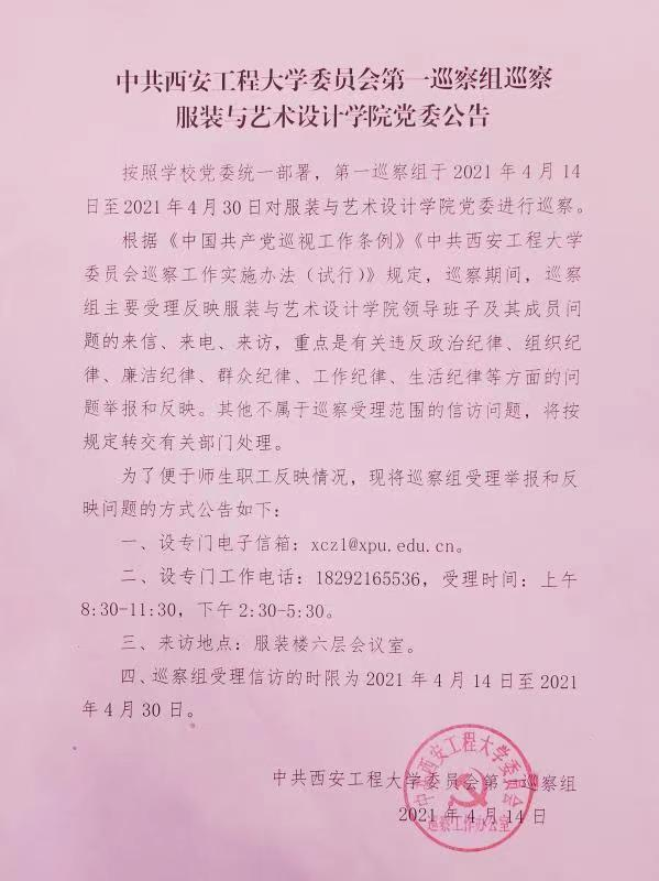 中共西安工程大学委员会第一巡察组巡察925足球直播 党委公告