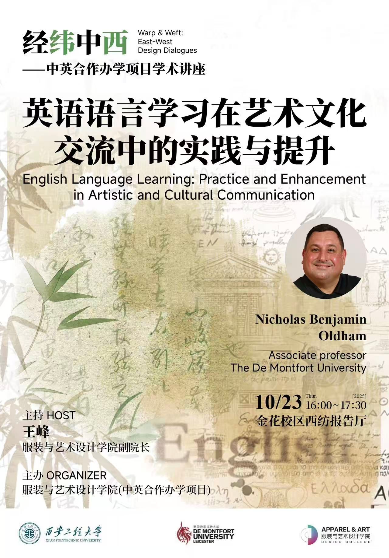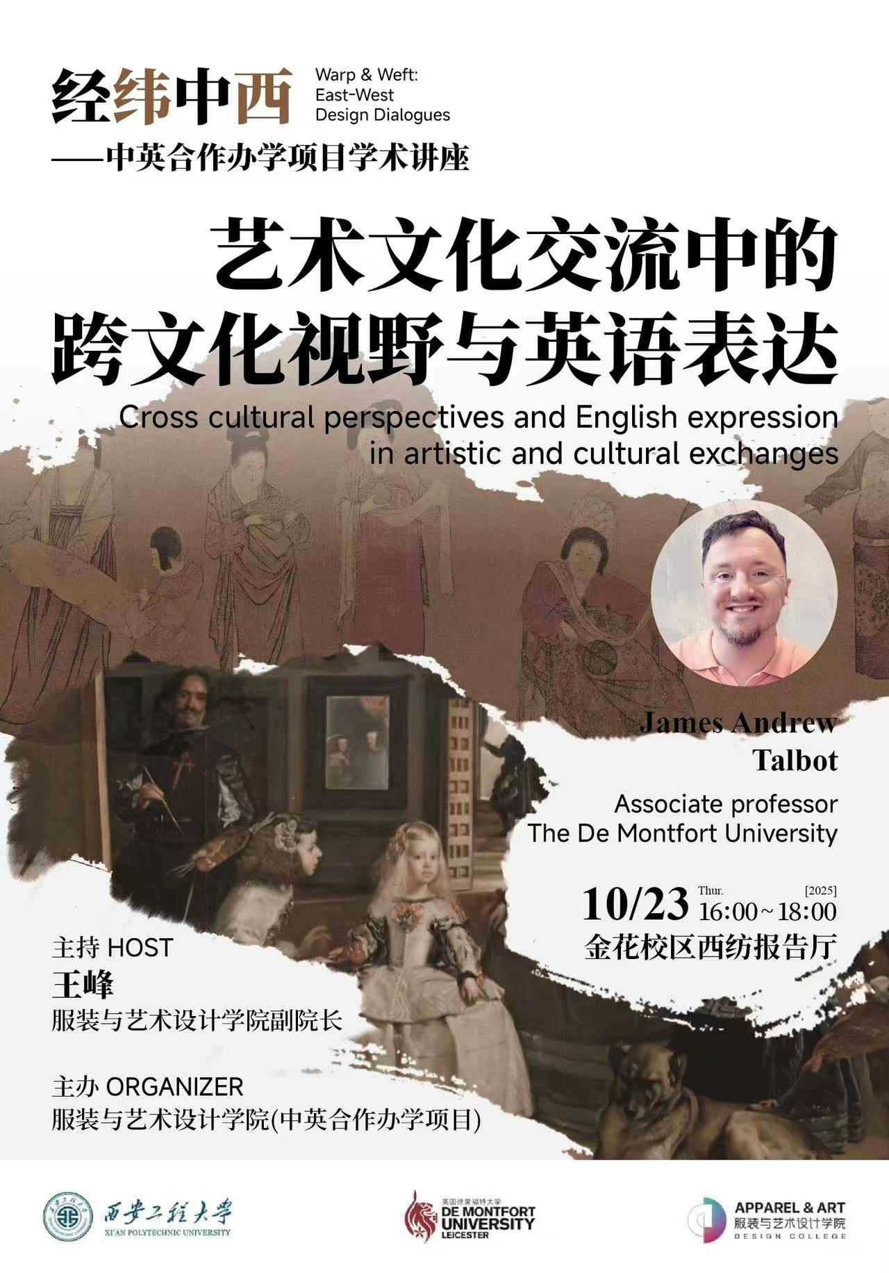 讲座预告|925足球直播 将于10月23日(周四)16:00-18:00在金花校区西纺报告厅举办经纬中西—中英合作办学项目学术讲座,主要分为艺术文化交流与英语语言学习和艺术文化交流中的跨文化视野与英语表达两个板块进行全英文讲座,欢迎大家讨论交流!