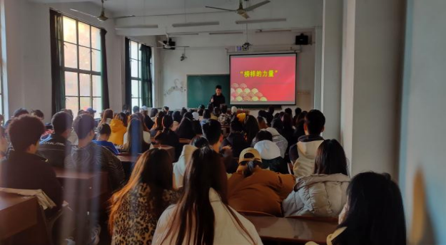 资助工作辅导员谭赛江主讲,2019级国家奖学金、纺织之光奖学金获奖学生以及视觉传达设计专业全体学生参与此次活动。