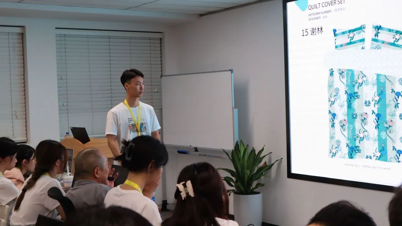 竞赛是提升综合能力的绝佳途径。秉持 “以赛促学” 理念,谢林积极投身各类赛事。在万斯家居纺织品设计夏令营首日晚,现场气氛紧张热烈,而谢林因忙于其他竞赛,准备仓促,本想入营后雕琢作品,却没料到首日就要面临点评,心情瞬间坠入冰窖。此次夏令营汇聚全国纺织类名校精英,他深知自己的表现代表的是个人,更是学校。不理想的首日表现刺激了谢林开启与时间的赛跑。白天,他专注课程,紧盯老师案例,聆听讲解,笔不停歇记录重点;夜晚,他在酒店熬夜修改设计方案。他将作品近乎推倒重来,在海量资料里搜寻,反复斟酌构图与配色。一周夏令营,谢林没一天凌晨两点前睡过觉。困意来袭,他靠顽强意志支撑,课间 10 分钟、大巴上都在抓紧补觉,咖啡与茶叶成了熬夜 “伴侣”。