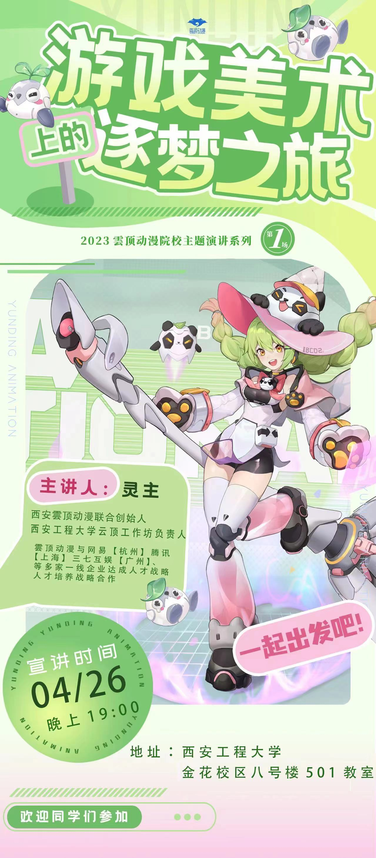 2023年4月26日晚,产品设计专业导师团活动之一邀请了云顶动漫联合创始人、西安工程大学云顶工作坊负责人灵主老师。灵主老师负责的云顶动漫与网易(杭州)、腾讯(上海)、三七互娱(广州)等多家一线企业达成人才培养战略合作。此次讲座面向21级产品设计专业100名学生,在金花校区8号教学楼501教室进行,讲座由产品设计系王燕老师主持,主题为“游戏美术上的逐梦之旅”。