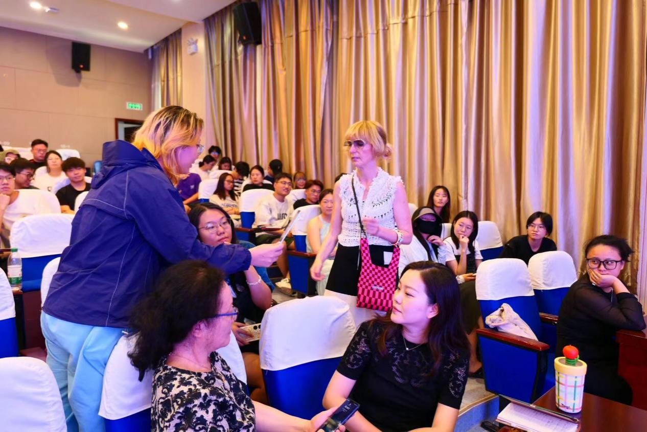 讲座期间,Sarah Louise Gresly向同学们非常清晰的梳理了有关面料与纤维方面的知识。从她的讲述中,同学们可以真切的领会不同的纤维在使用不同的加工工艺后呈现的独特的质感。同时,西安作为丝绸之路的起点,Sarah Louise Gresly还与大家就丝绸的话题展开了热烈的讨论。面对学生们提出的问题,Sarah Louise Gresly也用温柔的语调给出专业的答案,讲座期间现场氛围十分活跃。