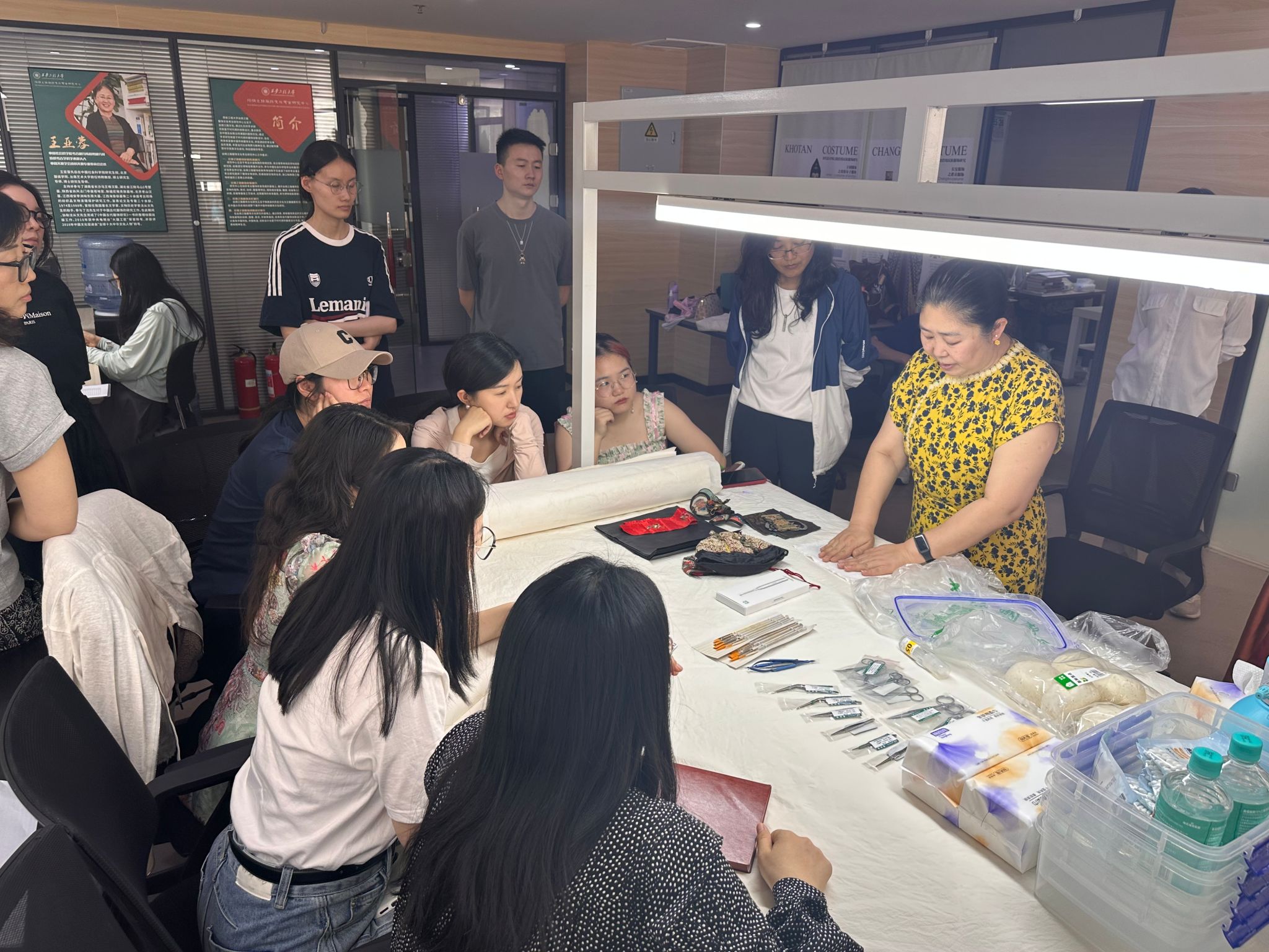 考古研究所文化遗产研究保护中心纺织品修复专家、中国文物学会纺织专业委员会理事司志文为培训主讲人。来自我校20余名教师、研究生参加了本次培训。
