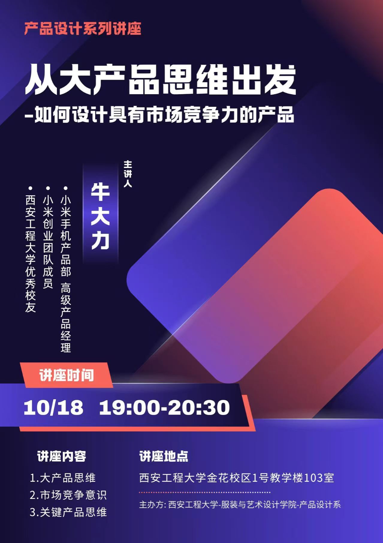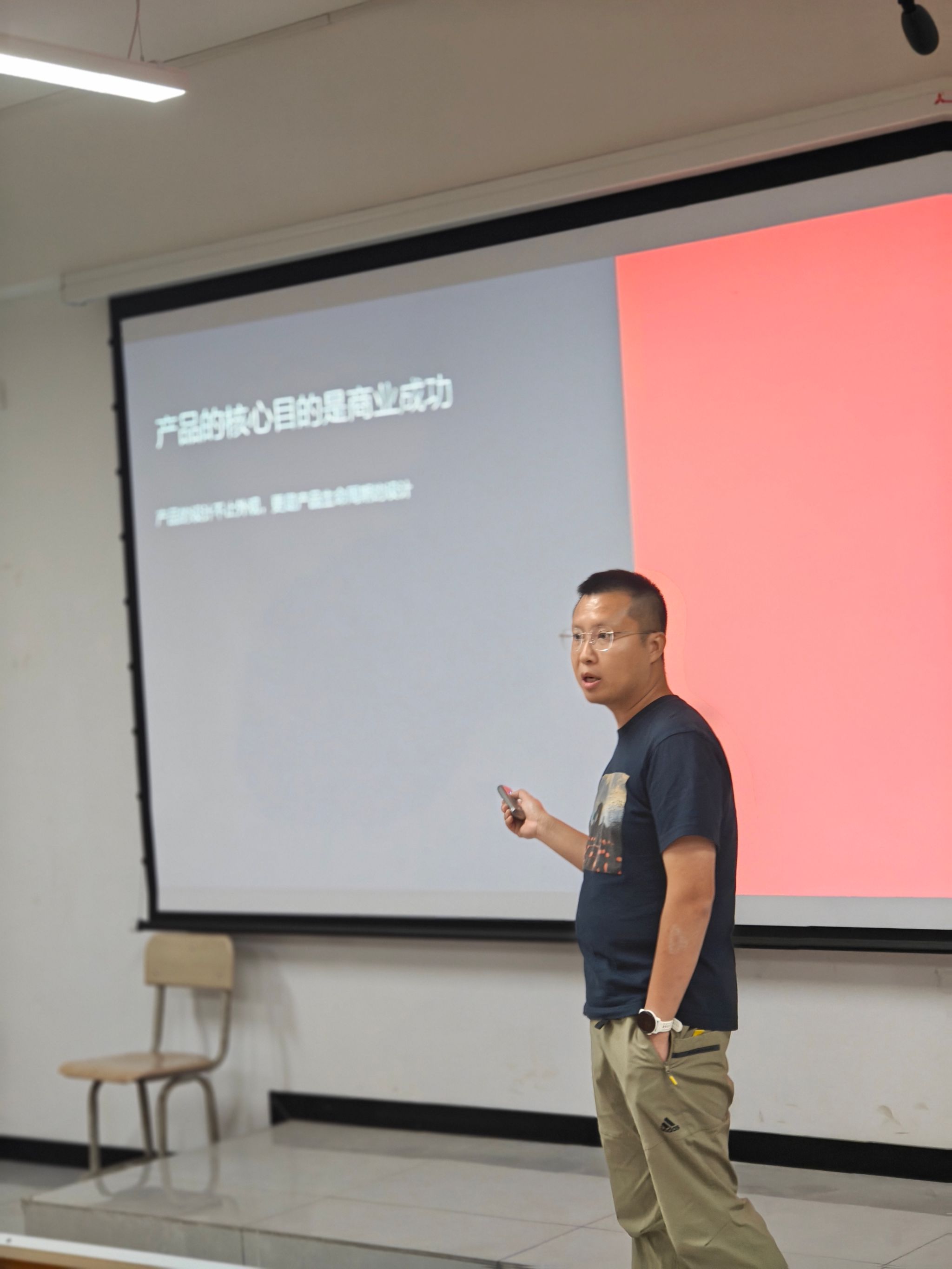 建院40周年校友返校之际,产品设计系三全育人导师团在金花校区1号楼主教学楼103教室成功举办了一场别开生面的讲座,主题为“先抛开设计,再谈产品设计”。本次讲座由产品设计专业系主任王燕老师精心策划并主持,特邀我校杰出校友——小米手机产品部高级产品经理、小米创业团队核心成员牛大力老师作为主讲嘉宾,旨在为学生们深度剖析市场竞争环境下的产品思维与大产品理念。