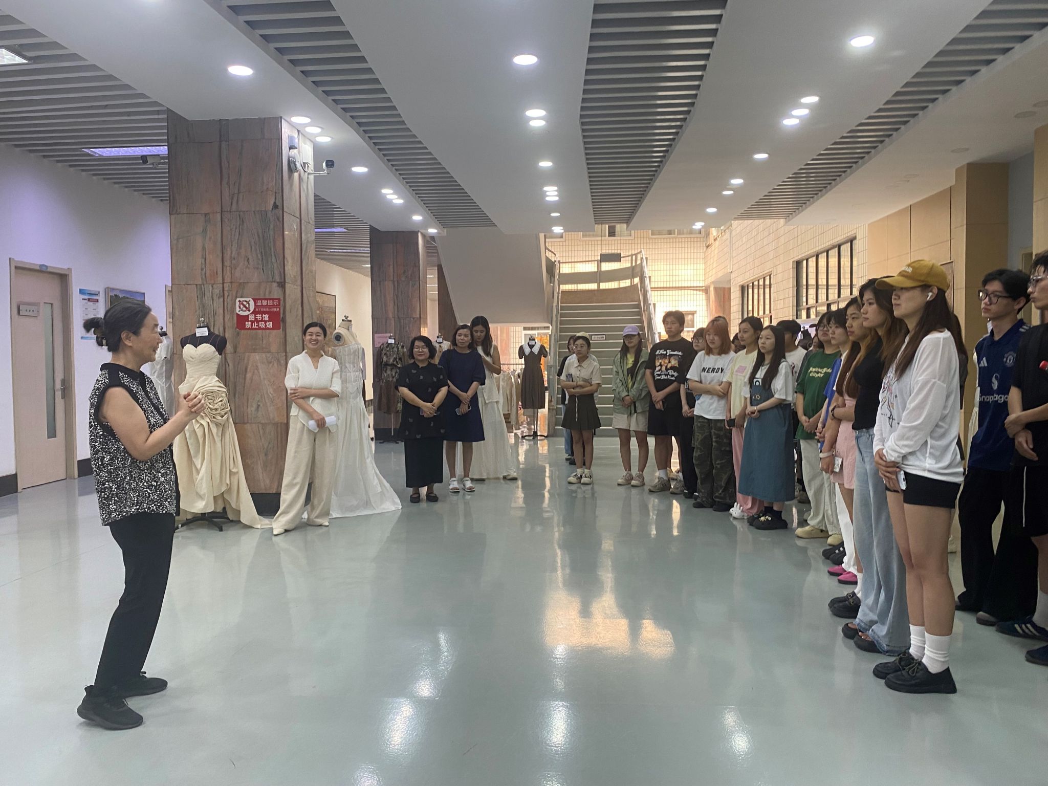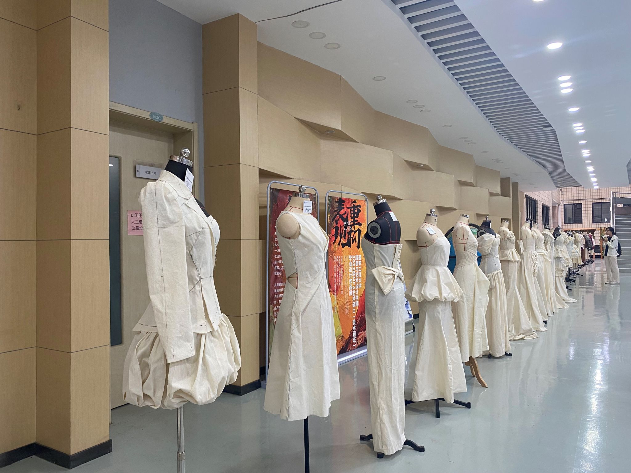 2023级服装设计与工程专业“立体裁剪”与“女装结构设计与工艺”课程结课作品静态展在金花校区图书馆一楼大厅正式拉开帷幕。本次展览为期三天(7月2日至4日),集中展示了120件学生作品,充分展现了同学们在服装结构、工艺与创新设计领域的扎实功底与艺术表达。