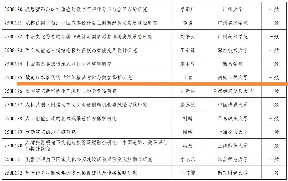 王欢副教授申报的《散遗日本唐代传世丝织精品考辨与数智修护研究》成功获批一般项目,实现925足球直播app