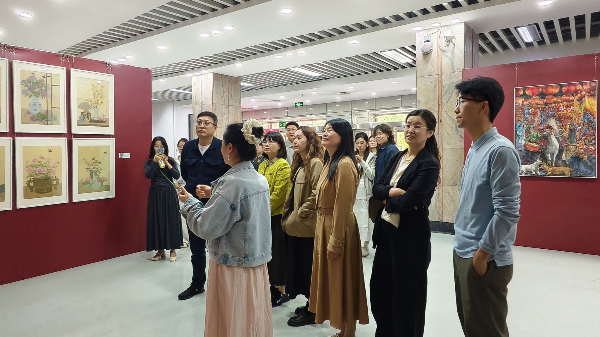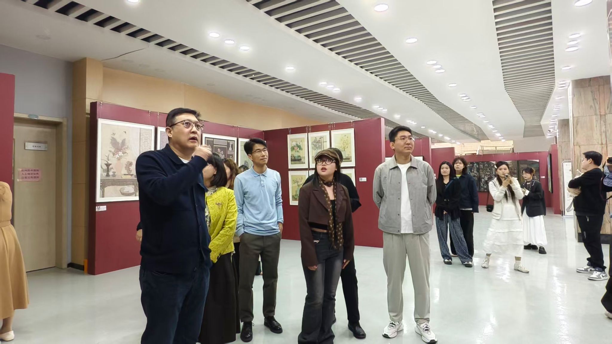 开幕式后,院领导一行来到美术与书法展区(金花校区图书馆1楼)现场与美术与书法师生亲切交谈、深入交流,倾听学子们的创作思路与心得,对同学们三年来的成果给予肯定并表达对未来的期许。