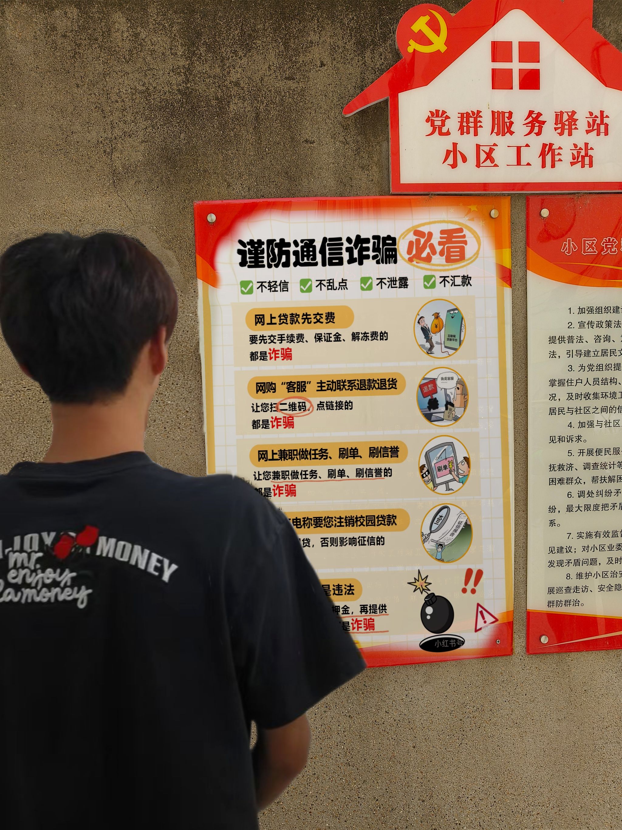 4月23日,24级设计学类18班在西安民航社区开展“反诈守护・安全同行”宣传活动。志愿者通过张贴反诈海报、入户讲解、知识问答等形式,揭露“虚假网购”“冒充公职人员”等典型诈骗手段,覆盖居民300余户。活动中,学生自编反诈顺口溜、设计防骗漫画手册,将专业特长与公益服务有机结合,有效提升了居民识骗防骗能力,筑牢社区安全防线。