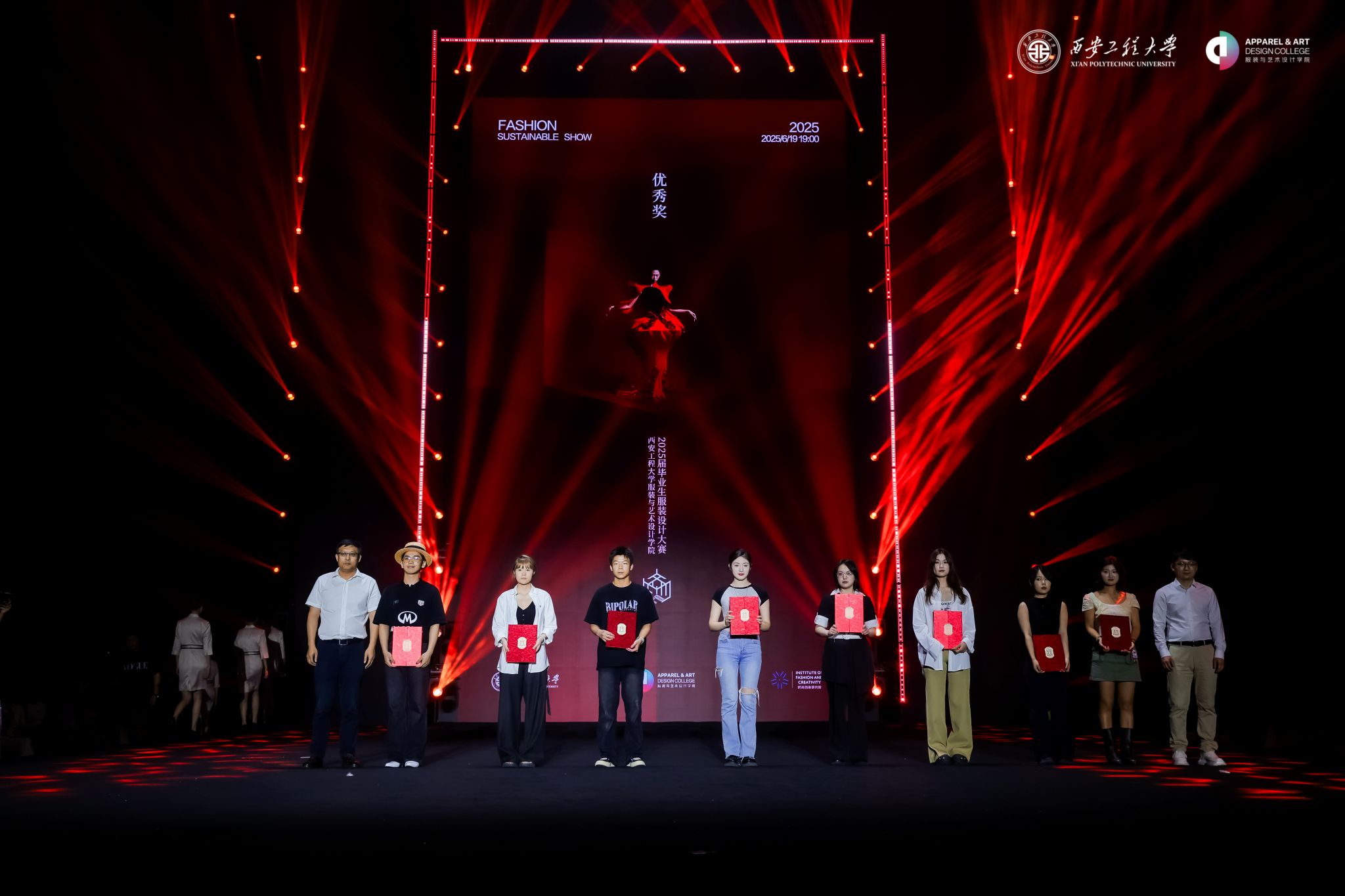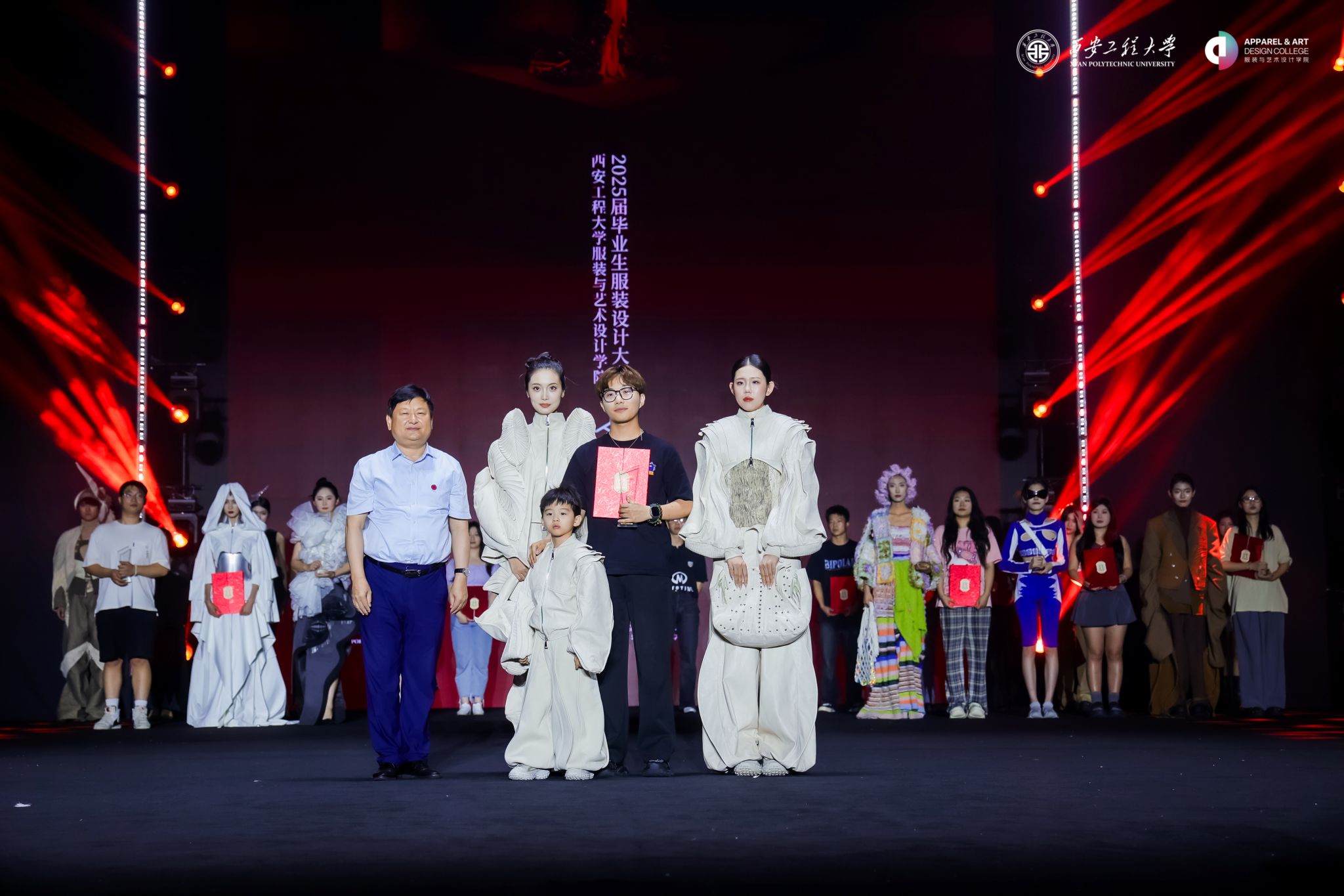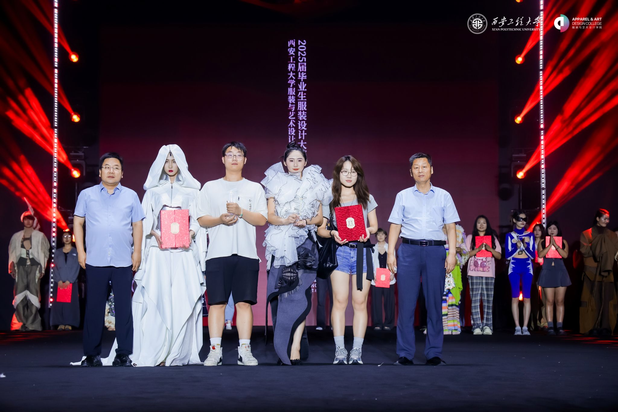 陈霞教授,上海未甲文化传媒有限公司总经理姜伟辉、西安唐晟玖合品牌管理有限公司董事长钱垚等业内专家担任评委。大赛最终评选出一等奖1名、二等奖2名、三等奖3名、优秀奖10名。校党委书记马万清为一等奖获得者李昊天颁奖;校领导为二等奖获得者张霄璇、徐丛鑫,三等奖获得者王乐乐、张珂清、张悦嘉,最佳材料运用奖获得者王芗泽、最具市场潜力奖获得者徐佳蕊、最佳工艺制作奖获得者黄祖铱颁奖;925足球直播