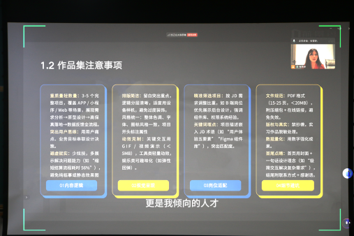 学长学姐们结合自身经历,围绕“大学如何高效学习”“设计学细分专业如何选择”“就业方向与职场经验”等话题展开分享。一方面剖析行业发展趋势,建议同学们尽早明确职业方向,并持续学习新技能;另一方面,通过深度解析网申、笔试、面试全流程考核标准,分享简历制作、作品集分享、面试技巧及岗位匹配逻辑,帮助学生掌握行业用人标准。此外,学长学姐们还分享了从学生到职场人的心态转变,提醒大家注重专业技能与沟通能力的平衡。