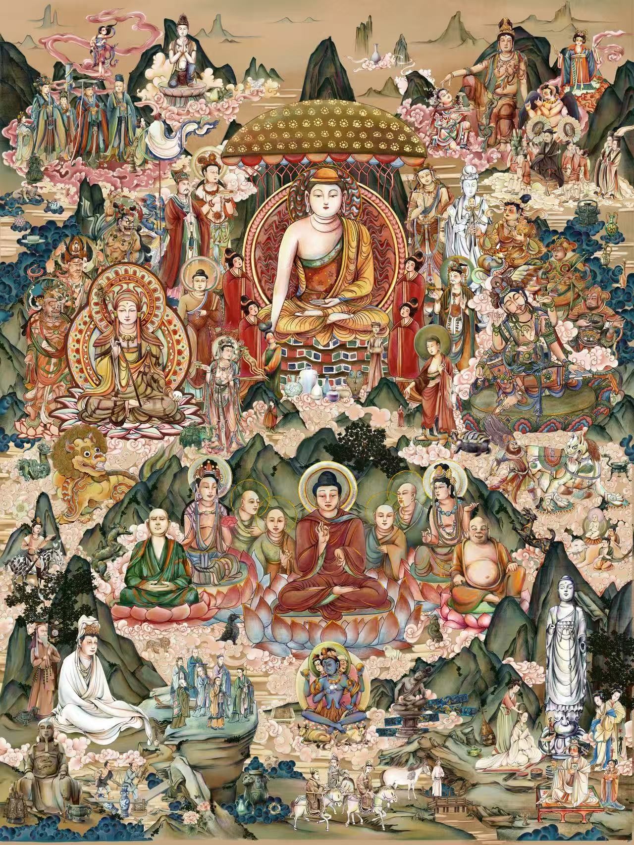 纸本水彩 李媛婕《古今共此卷》110cm × 160cm