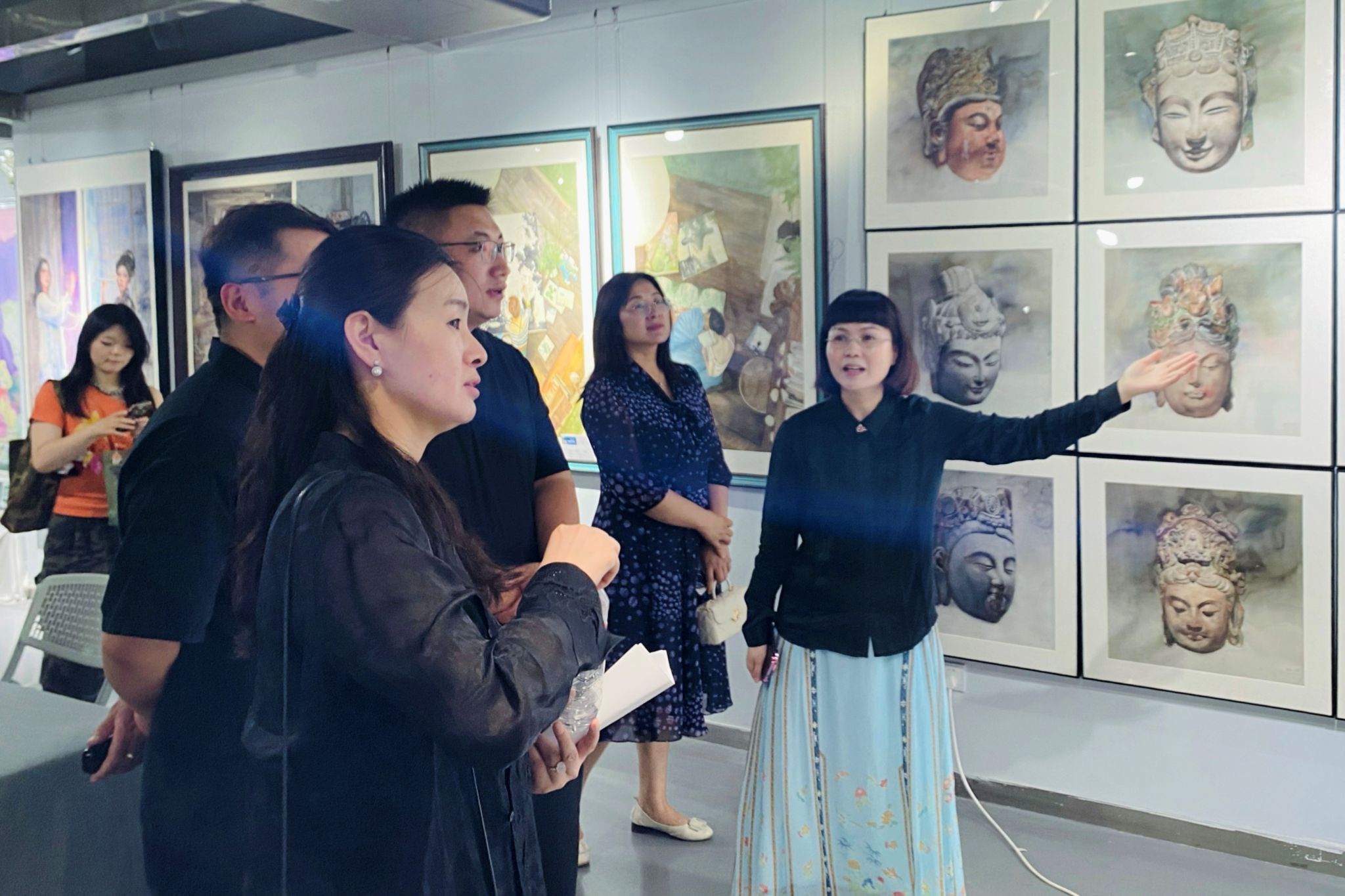 对美术学专业教育教学的持续改进成效和老师们的辛勤付出给予赞扬,对毕业生取得的优异成绩给予肯定并寄予殷切期望。西安市美协代表宋红女士盛赞作品质量,认为其展现了青年学子对生活的热爱与关注,体现了陕西省高校美术教育的专业水准。李艳称赞展览为“视觉盛宴”,期待深化校企合作。副院长李朝霞介绍了美术学专业三大方向的建设成效,一年来通过课程改革显著提升了毕设质量。