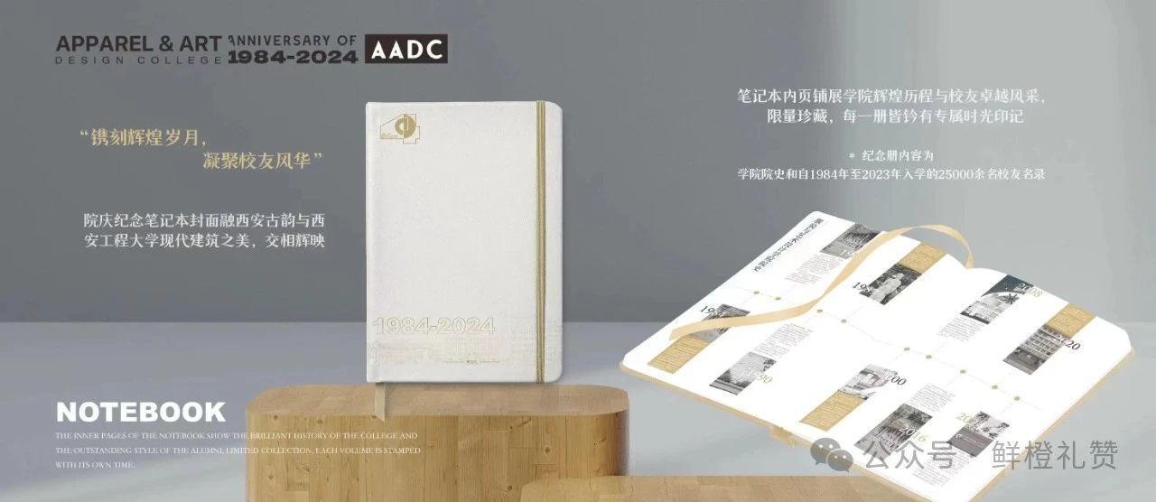 “镌刻辉煌岁月,凝聚校友风华”院庆纪念笔记本,封面融西安古韵与西安工程大学现代建筑之美,交相辉映;笔记本内页铺展925足球直播