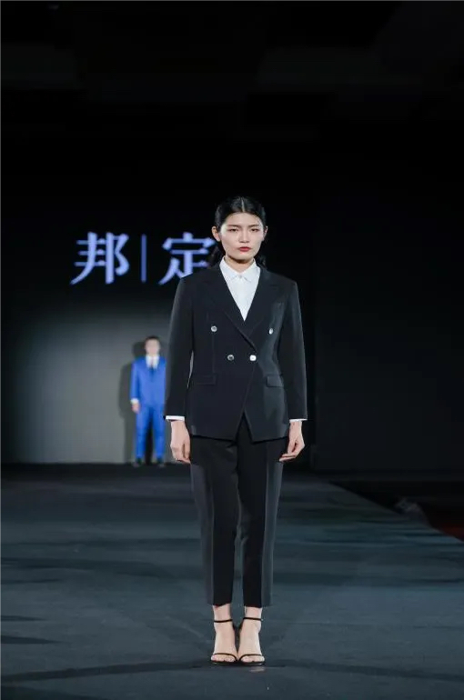此次发布会以“未来时尚”为主题,融入了大量的科技元素,打造出一种前卫、时尚的氛围。该系列运用了最新的材料和工艺,将时尚与舒适完美融合。模特们身着各式新款服装,搭配出各种时尚造型。从飒爽的西装到优雅的旗袍,从时髦风衣到潮流大衣,无一不展现了邦定服饰对时尚的敏锐洞察和精准把握,为观众呈现出一场视觉盛宴。