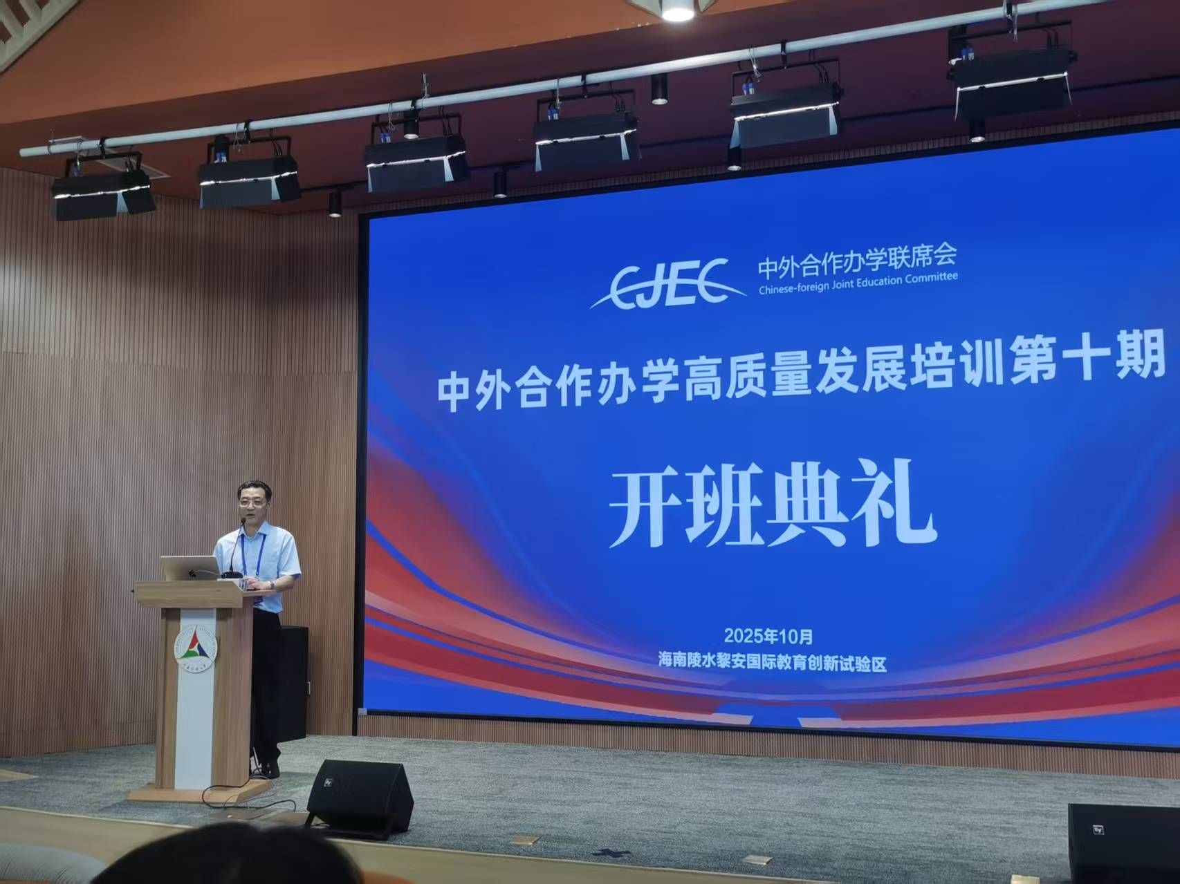 培训期间,秦伟应邀作交流发言,他全面介绍了我校的办学历史、特色学科以及中外合作办学的发展历程与成果,展示了我校在国际化办学方面的积极探索与扎实基础,受到与会代表的广泛关注。